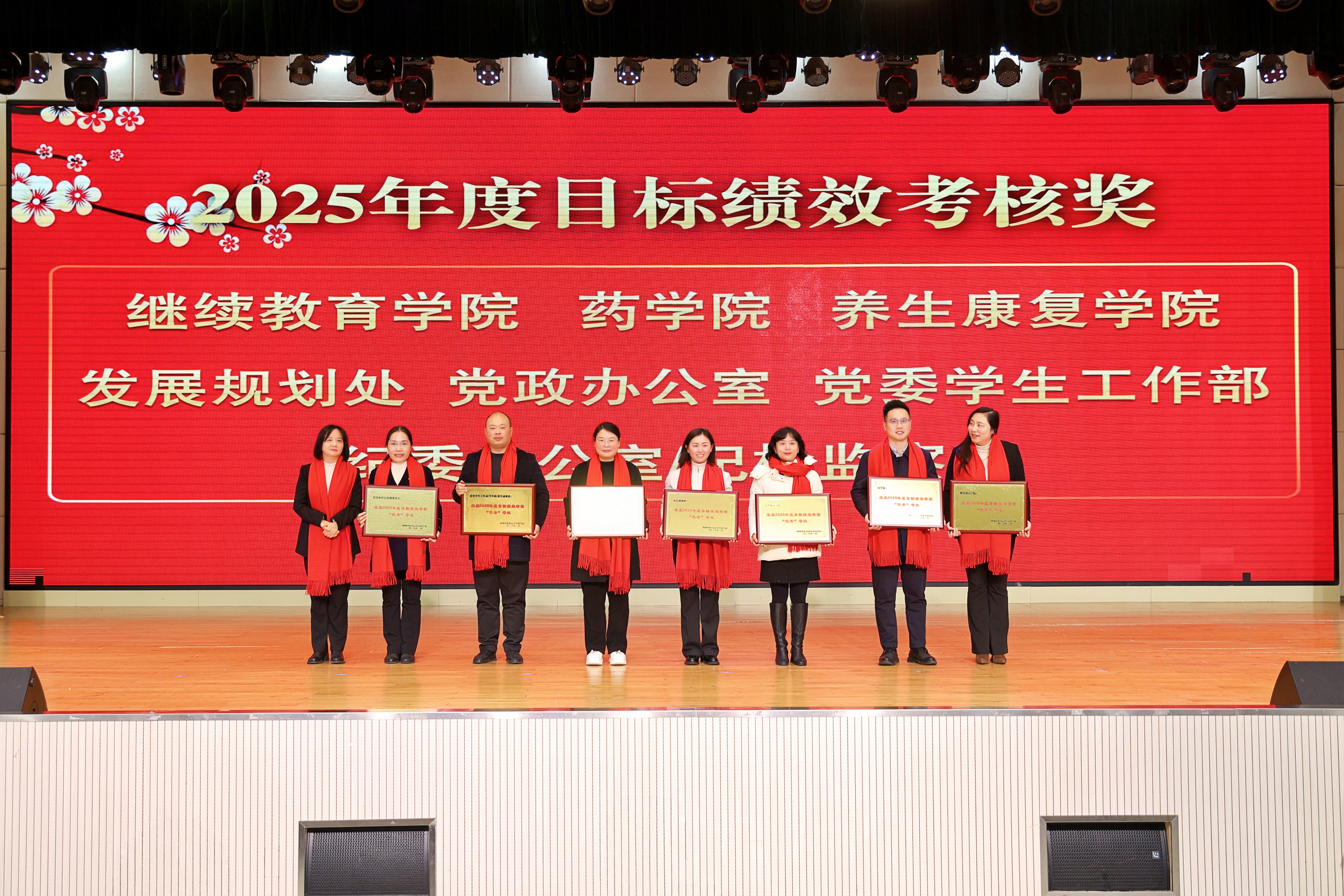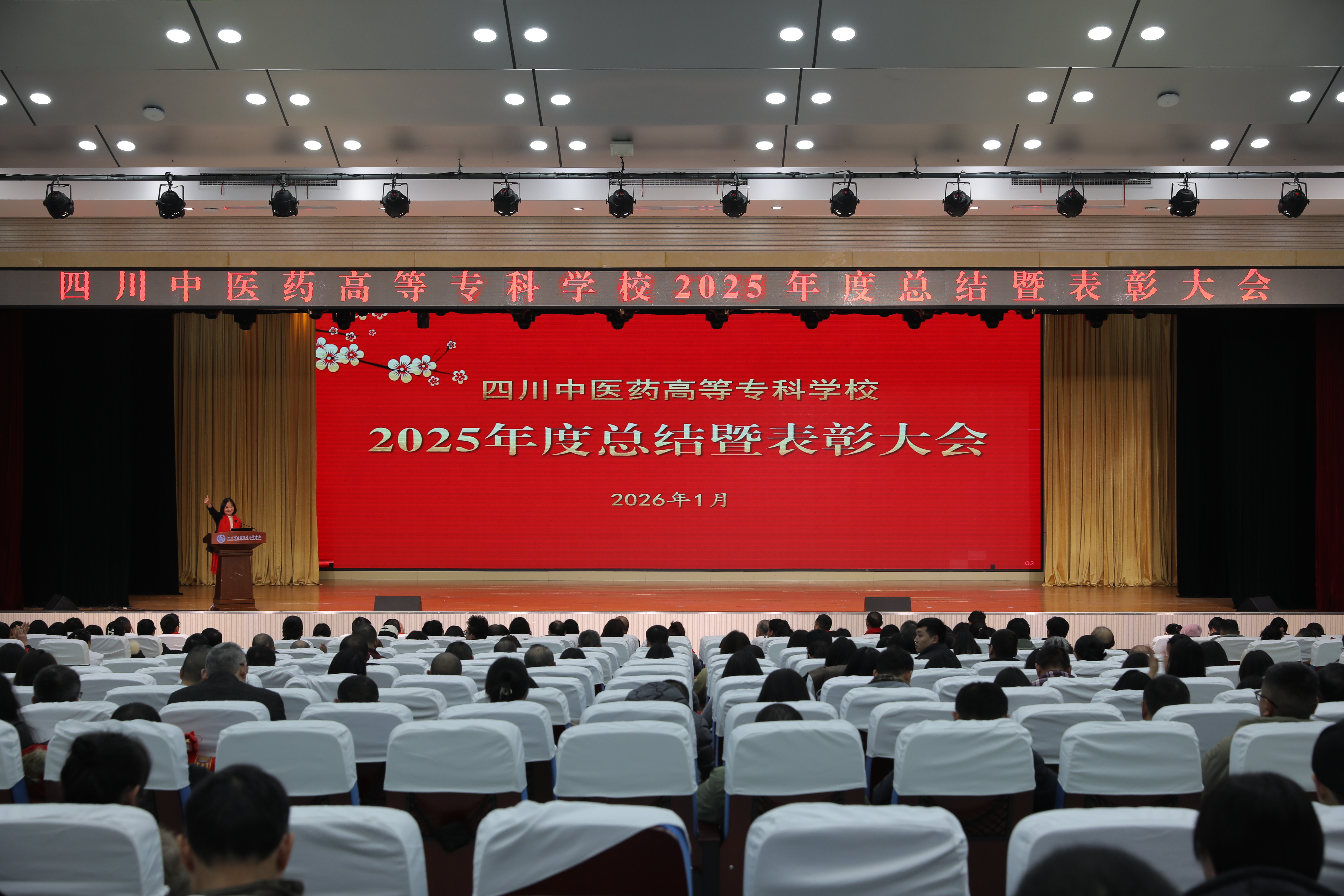 1月16日下午,我校2025年度总结暨表彰大会在北园礼堂隆重举行。大会以“弦歌不辍传薪火 奋楫扬帆启新程”为主题,学校党委书记李炜弘,党委副书记、校长李祥等领导班子成员,附属医院/绵阳市中医医院及第二附属医院/绵阳市安州区人民医院相关负责人与全体教职工齐聚一堂,总结年度成效,表彰先进典型,共绘发展新篇。会议由副校长尚宁川主持。
